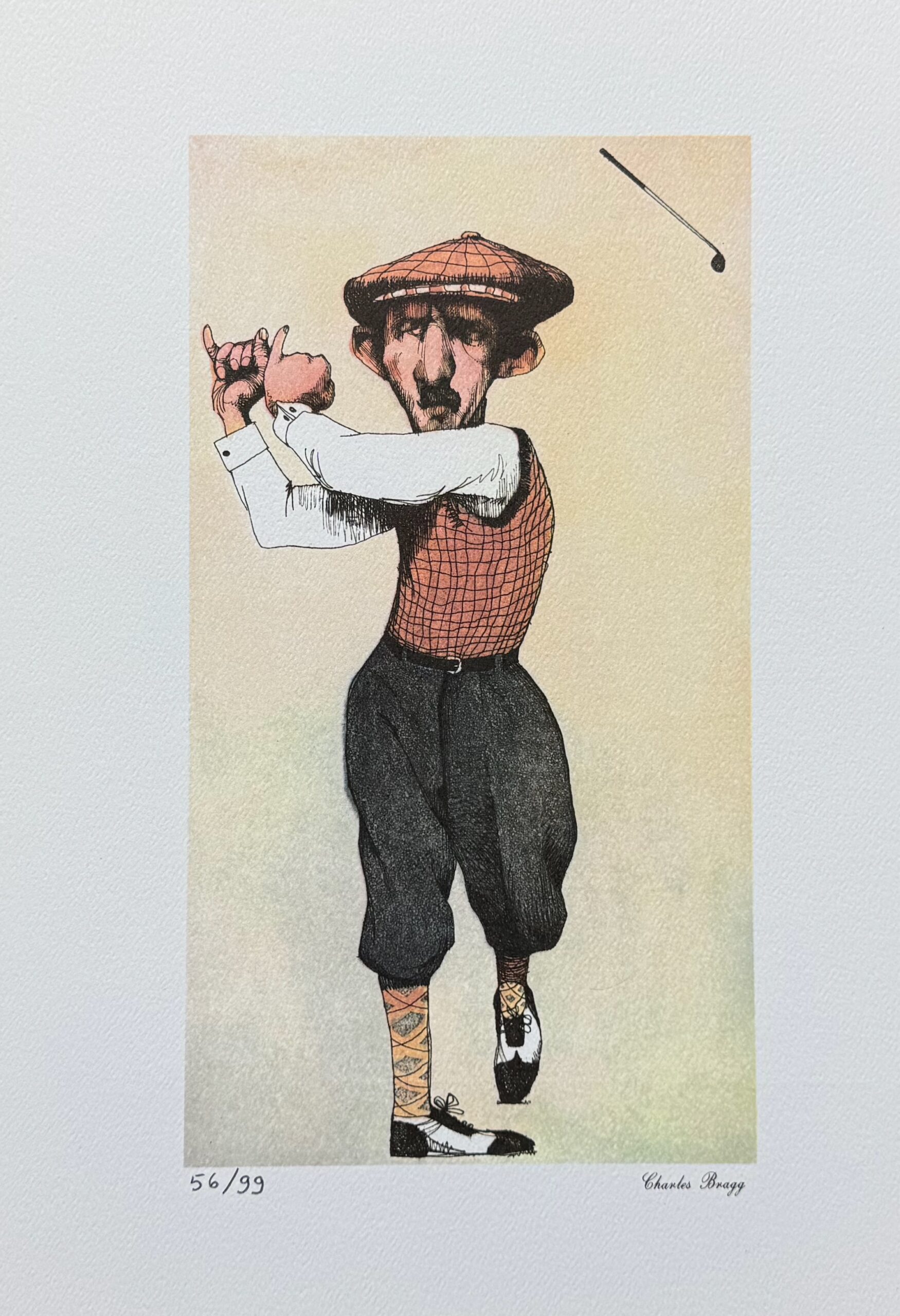 This is a Charles Bragg limited edition color lithograph titled “GOLFER”.