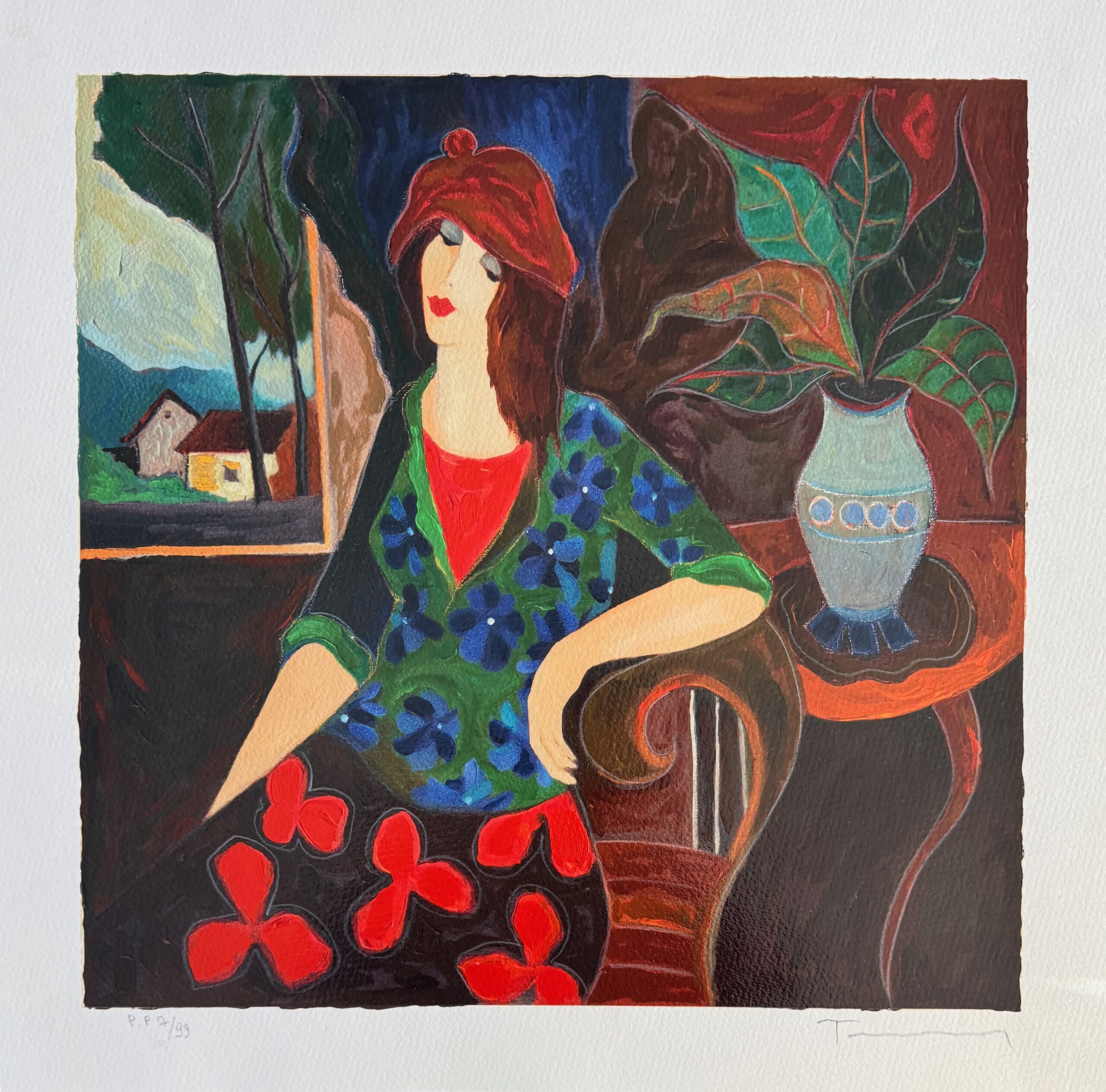 This is a limited edition hand signed serigraph by Itzchak Tarkay titled “AMANDA”.
