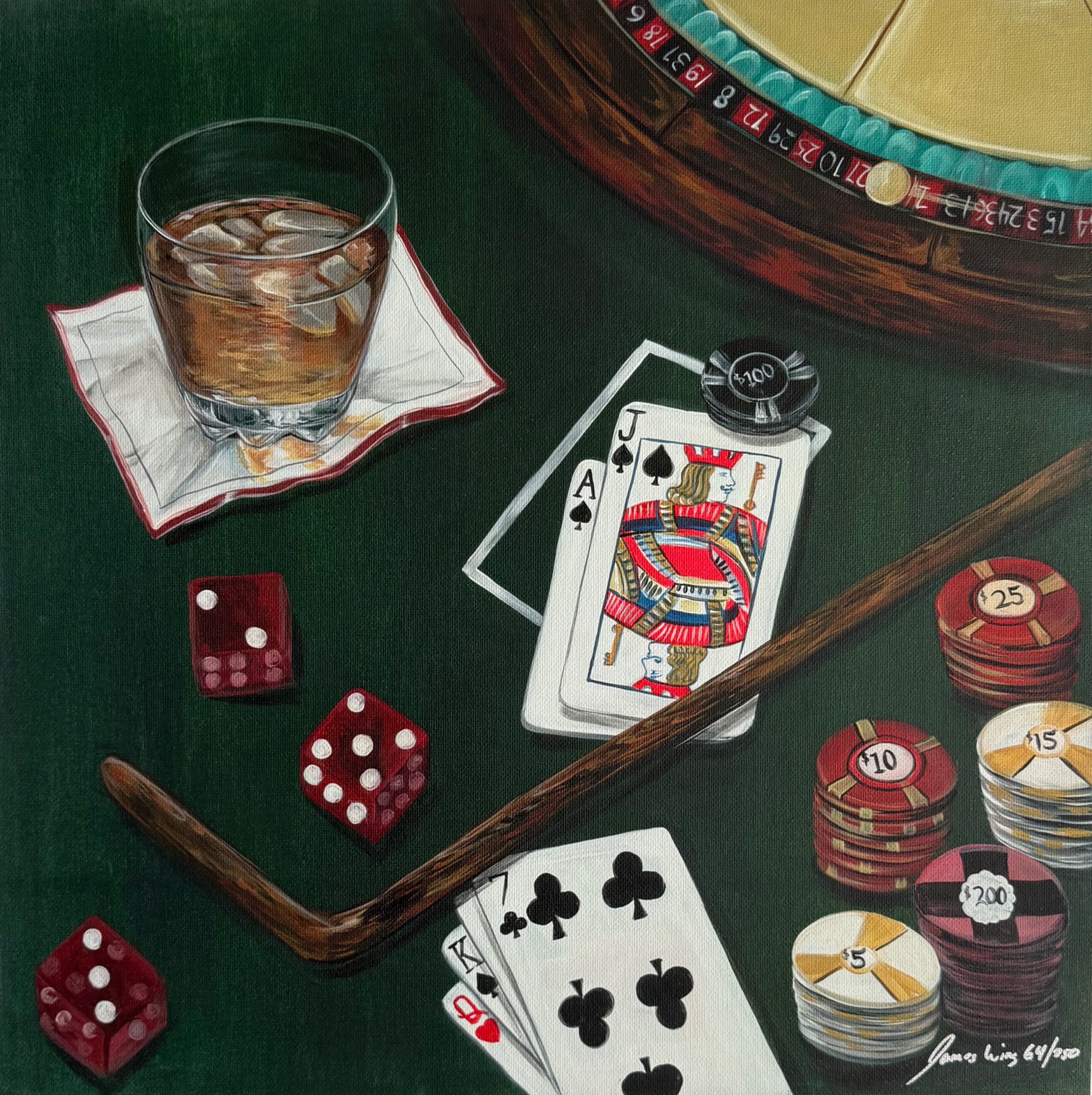 Born into a seminal Indian tribe, James was always fascinated by the games of chance and skill. His talent was portraying the games he saw played as a child at the reserve and deftly illustrating those memories onto canvas. As an adult, James attended Florida State University in Tallahassee. As a bachelor student, James attended many billiards and poker tournaments to sell his tribute works to the fans seeking souvenirs. When the connection to his heritage realized, his works began to cover the walls of the school, then the tribe casinos throughout the state of Florida, then galleries in the adjoining hotels. With his acclaim steadily building, James continues to be featured at hotel and casinos around the country. I always wanted to compete; my talents have made my only playing field my aisle. James Wing.