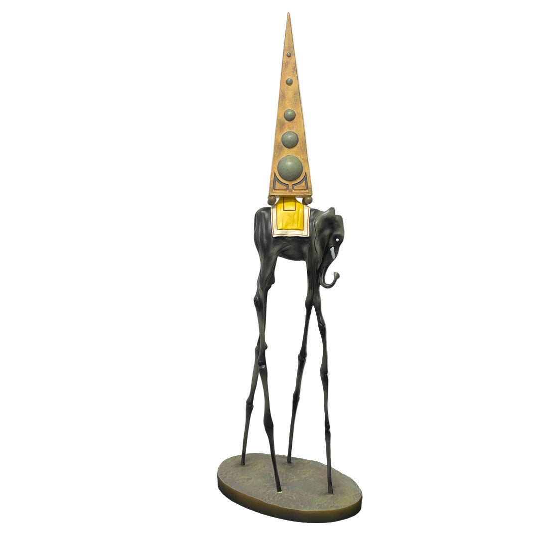 This is a large size sculpture entitled “SPACE ELEPHANT FROM THE TEMPTATION OF SAINT ANTHONY” (1946) by Salvador Dali.